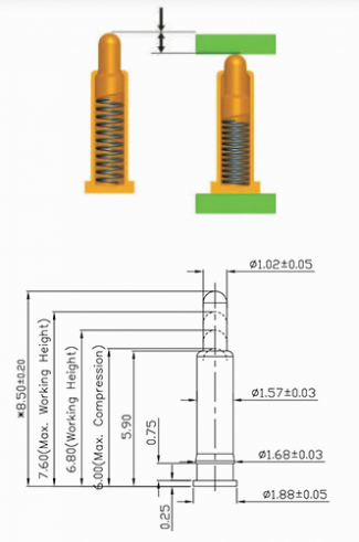 A altura de trabalho básica do Pogo Pin (conector de mola):