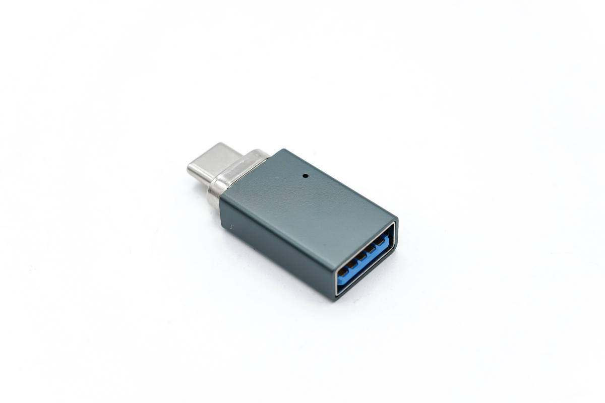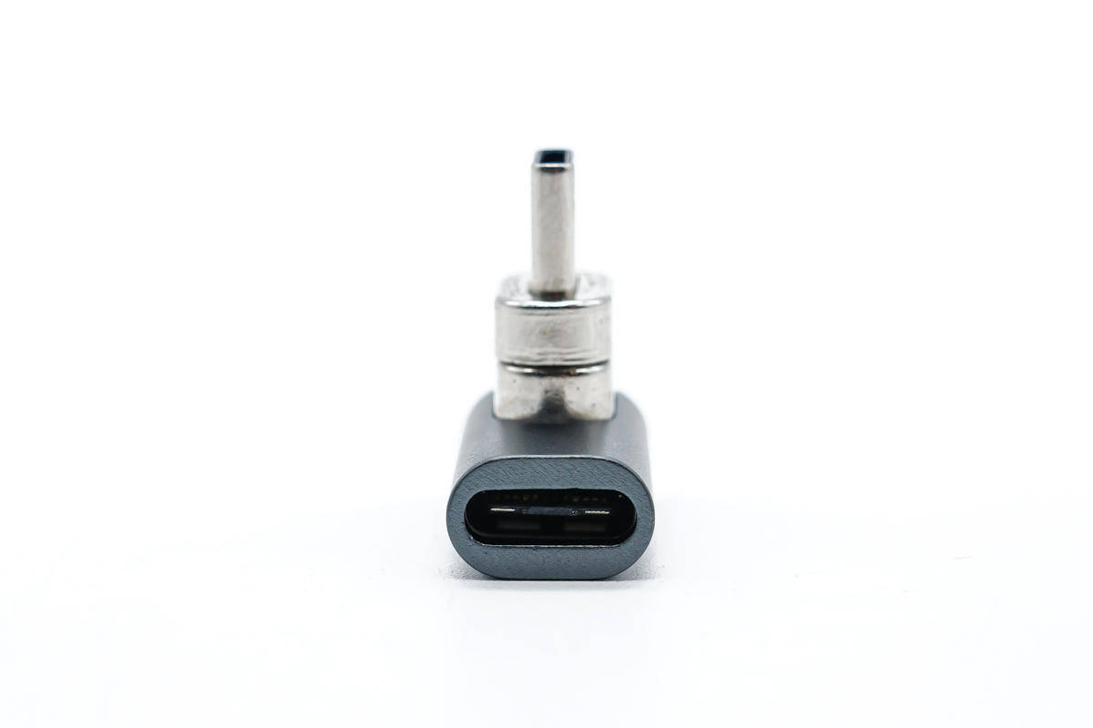A extremidade de entrada do adaptador adota uma porta fêmea USB-C para conectar os cabos.