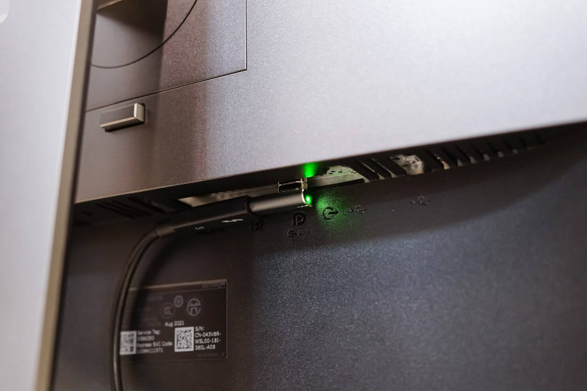 Em seguida, vamos ver a transmissão de vídeo, conecte o cabo de dados Thunderbolt 3 ao monitor Dell U2720QM 4K através do adaptador.